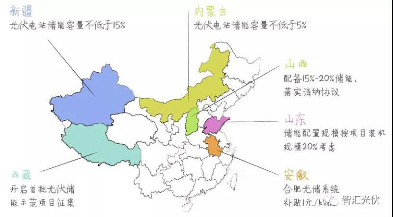包括山東、山西、新疆、內(nèi)蒙古、安徽及西藏等十幾個省份,相繼出臺相關(guān)文件要求光伏、風電等新能源電站加裝儲能系統(tǒng)。
