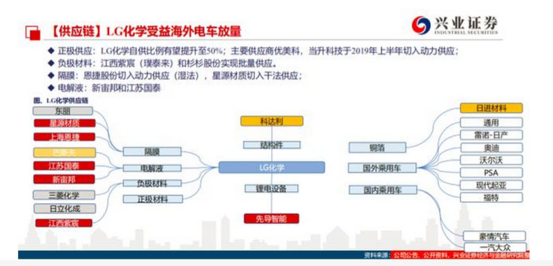 興業(yè)證券分析師朱玥1月8日?qǐng)?bào)告整理LG化學(xué)產(chǎn)業(yè)鏈如下圖所示: