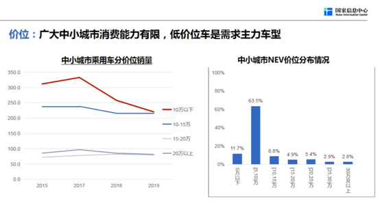 適用的產(chǎn)品是什么樣的?廣大中小城市消費能力是非常有限的。從傳統(tǒng)的車型來看,10萬元以下的車型是廣大的中小城市需求的主體,更不用說農(nóng)村地區(qū)了;新能源汽車分布的價位也是10萬元以下為主體。當然5—10萬是一個很重要的市場,因為補貼變化以后,5萬元的車型拿到國家補貼可能比較難,所以大家都傾向于5—10萬。