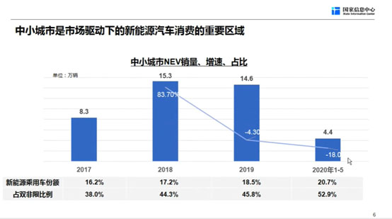 那么這個市場在哪兒呢?中小城市是在市場驅(qū)動下新能源汽車主銷的領(lǐng)域,雖然這兩年市場也有所下滑,但是相對整體市場來說還是比較穩(wěn)定的。而且在新能源汽車整個銷售當中,中小城市的銷量占比實際是在逐步提升的。去除限購和限行的城市,今年中小城市占雙非限城市新能源汽車銷量的50%以上。
