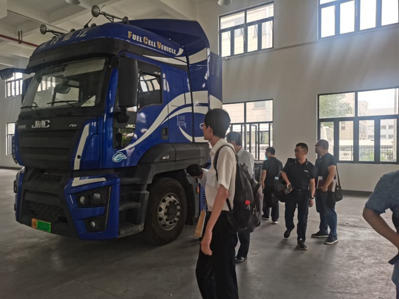 交流會上,清能股份銷售總監(jiān)錢繼冉代表公司為大家介紹了水冷和空冷系列產品,并帶領大家參觀了生產車間,以及“江鈴42噸燃料電池半掛牽引車”。