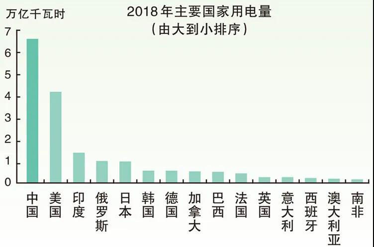 中國(guó)電力消費(fèi)約為美國(guó)的1.6倍;中國(guó)、美國(guó)、印度三國(guó)合計(jì)占全球總量的一半。