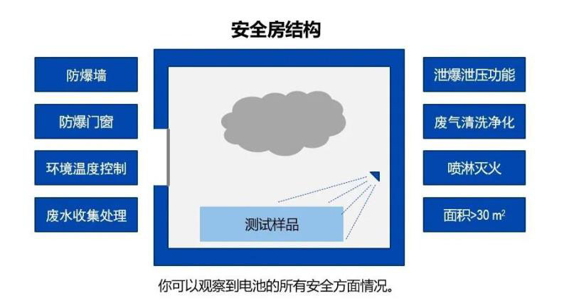 TüV 南德常州電池實(shí)驗(yàn)室擁有多個(gè)專業(yè)的安全濫用測試室,具有防爆、廢氣清洗凈化、廢水回收處理和浸水式滅火等功能,可以提供鋰電池以及系統(tǒng)的熱失控和熱失控蔓延測試評估服務(wù),也可以配合客戶為研發(fā)提供定制化測試服務(wù)。