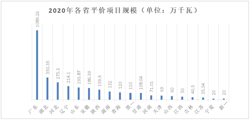 從省份來看,山東省獲批的項目個數(shù)最多,為544個,但其中有511個項目為平價的分布式光伏。另外,廣東省此次獲批了10.89GW的平價項目,是所有省份中批復(fù)容量最高的。