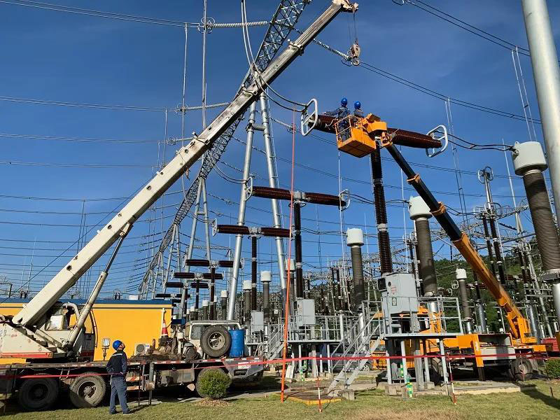 酷暑鏖戰(zhàn),南方電網(wǎng)超高壓公司南寧局員工完成2個(gè)間隔設(shè)備自主檢修工作。 陳光 攝