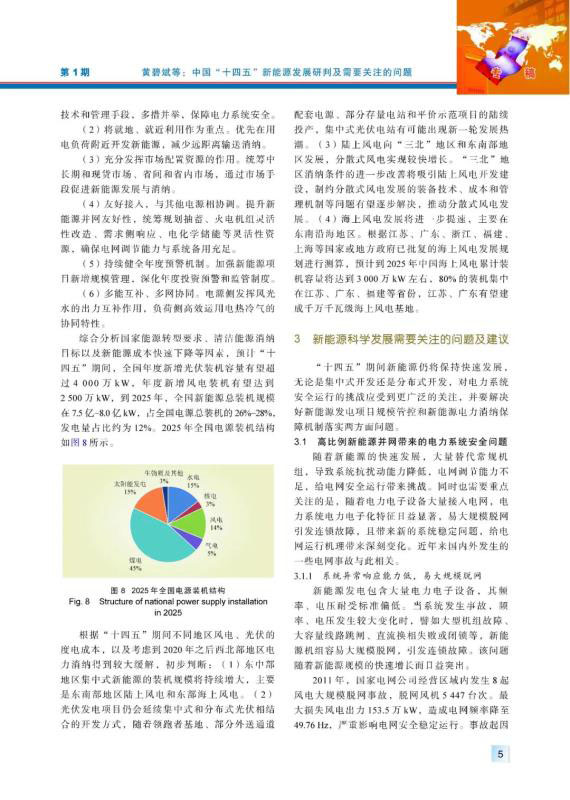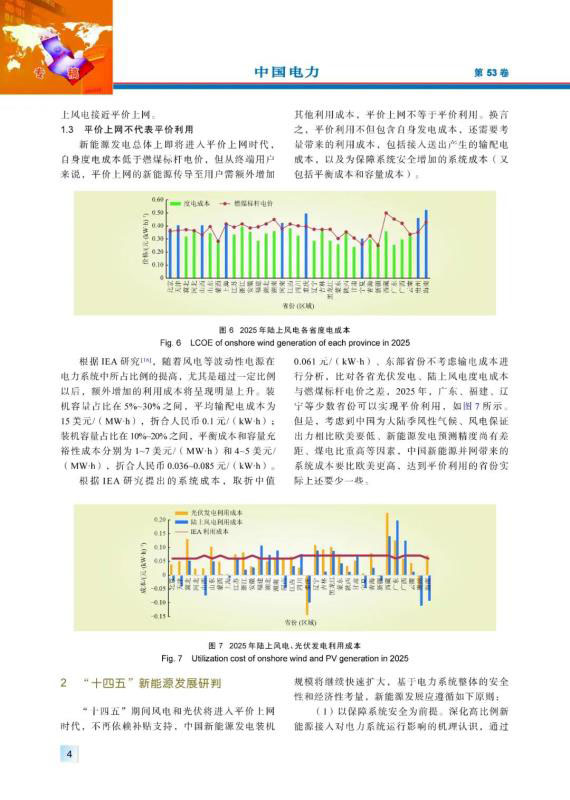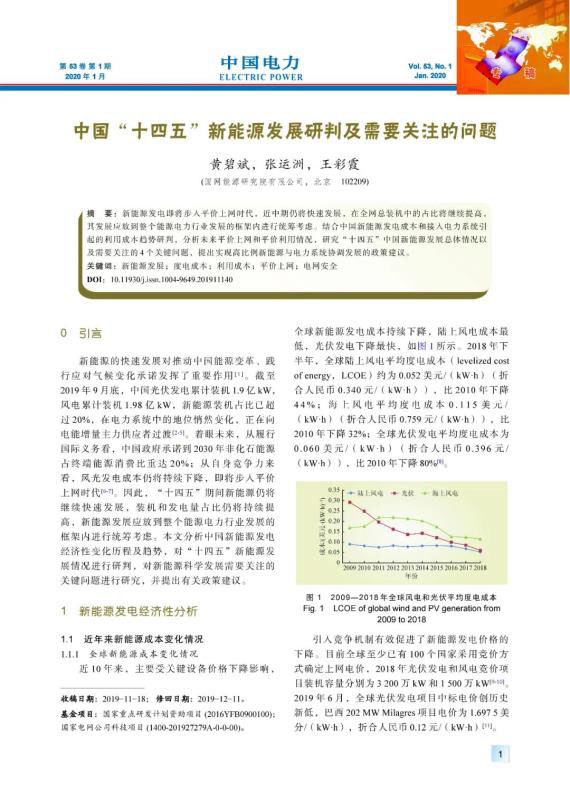 新能源發(fā)電即將步入平價上網(wǎng)時代,近中期仍將快速發(fā)展,在全網(wǎng)總裝機(jī)中的占比將繼續(xù)提高,其發(fā)展應(yīng)放到整個能源電力行業(yè)發(fā)展的框架內(nèi)進(jìn)行統(tǒng)籌考慮。結(jié)合中國新能源發(fā)電成本和接入電力系統(tǒng)引起的利用成本趨勢研判,分析未來平價上網(wǎng)和平價利用情況,研究“十四五”中國新能源發(fā)展總體情況以及需要關(guān)注的4個關(guān)鍵問題,提出實(shí)現(xiàn)高比例新能源與電力系統(tǒng)協(xié)調(diào)發(fā)展的政策建議。