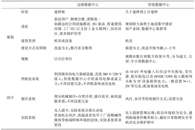 表2 邊緣數(shù)據(jù)中心與傳統(tǒng)數(shù)據(jù)中心在規(guī)劃與設(shè)計(jì)方面的對(duì)比