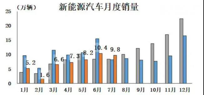此外,由于特斯拉國(guó)產(chǎn)今年銷量大幅度上升,這也對(duì)銷量產(chǎn)生了影響。今年上半年,特斯拉銷量為50310輛,依靠Model 3的國(guó)產(chǎn)化,今年上半年特斯拉增長(zhǎng)130.5%。而乘聯(lián)會(huì)數(shù)據(jù)顯示,特斯拉7月中國(guó)銷量11041輛。1-7月,特斯拉累計(jì)銷量在6.13萬(wàn)輛。若減掉特斯拉國(guó)產(chǎn)帶來(lái)的增量,今年1-7月,中國(guó)國(guó)內(nèi)新能源汽車市場(chǎng)的銷量42.3萬(wàn)輛,7月的銷量規(guī)模是8.7萬(wàn)輛。