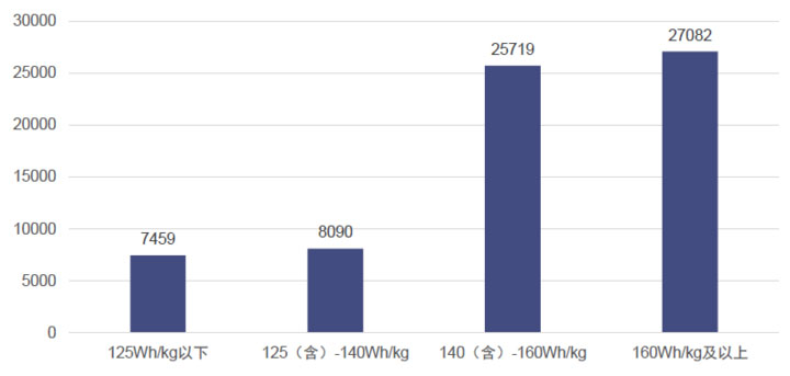 (純電動(dòng)乘用車池系統(tǒng)能量密度分布情況(輛))