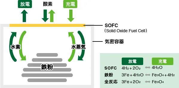 總部位于日本京都府Seika縣的初創(chuàng)公司Connexx Systems于2011年8月24日成立,正在研發(fā)Shuttle Battery電池,可通過混合氫氣和氧氣發(fā)電。該電池是一種結合固體氧化物燃料電池(SOFC)與鐵-空氣電池的蓄電池。燃料電池需要提供氫,Shuttle Battery就利用鐵的氧化還原反應來制造氫,提供給燃料電池。