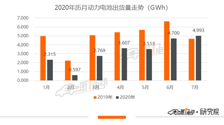 根據(jù)工信部合格證產(chǎn)量數(shù)據(jù),2020年7月共產(chǎn)出新能源汽車(chē)9.58萬(wàn)輛,環(huán)比增長(zhǎng)4.9%。根據(jù)第一電動(dòng)研究院的統(tǒng)計(jì)測(cè)算,動(dòng)力電池7月裝機(jī)量約為5GWh,同比增長(zhǎng)6.42%,實(shí)現(xiàn)了今年的首次正增長(zhǎng),環(huán)比也同樣上漲了6.3%。