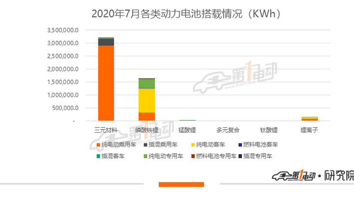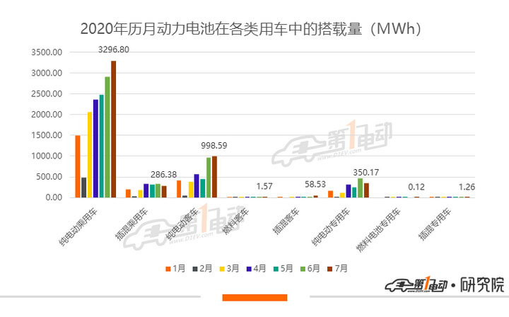 7月純電動(dòng)車(chē)型裝機(jī)4.65GWh,占比93%,插混車(chē)型裝機(jī)346.2MWh,燃料電池車(chē)型裝機(jī)1.69MWh。