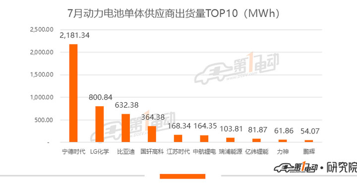 7月寧德時(shí)代裝機(jī)2.18GWh,環(huán)比下跌7.2%,市占率也下降了約6個(gè)百分點(diǎn)。