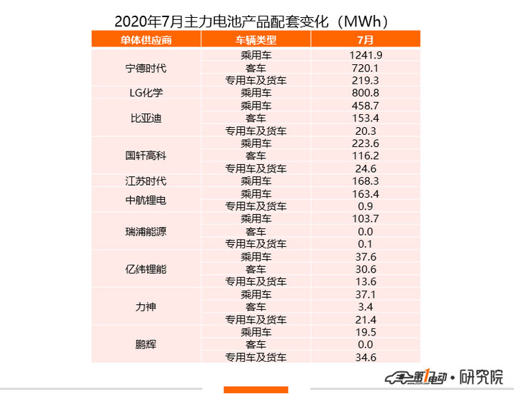 作為領(lǐng)頭企業(yè),寧德時(shí)代7月在乘用車(chē)上的裝機(jī)量為1241.9MWh,環(huán)比下跌8.1%,共為28家乘用車(chē)車(chē)企、74款車(chē)型供貨。從裝機(jī)量上來(lái)看,蔚來(lái)ES6、理想ONE、歐拉R1、紅旗EV和蔚來(lái)ES8為7月配套車(chē)型TOP5,占寧德時(shí)代在乘用車(chē)總裝機(jī)的15.9%、6.8%、6.6%、4.9%和4.8%,五款車(chē)型的累計(jì)占比為39%。