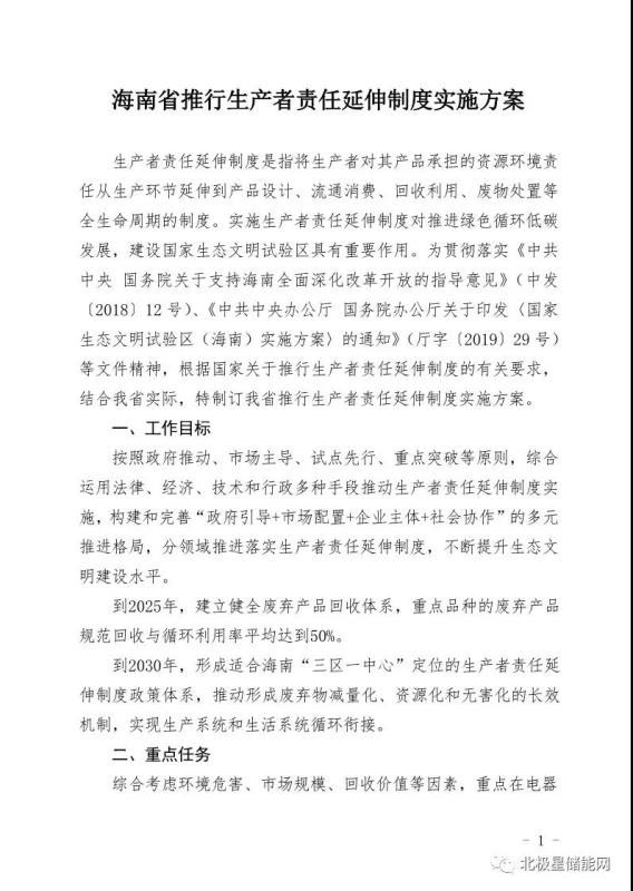 8月12日海南省發(fā)布了《海南省推行生產者責任延伸制度實施方案》,方案指出到2025年,建立健全廢棄產品回收體系,重點品種的廢棄產品規(guī)范回收與循環(huán)利用率平均達到50%。