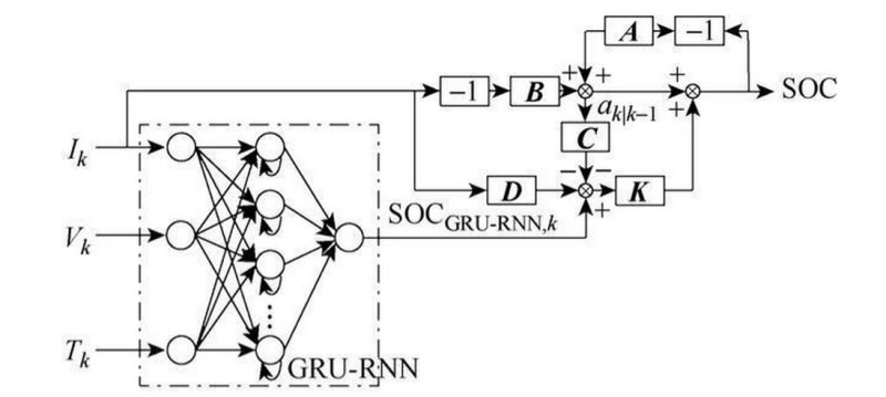 對(duì)于鋰離子電池而言,SOC是時(shí)變狀態(tài)量,其歷史狀態(tài)對(duì)當(dāng)前狀態(tài)的影響是無法忽視的。另外,為了實(shí)現(xiàn)鋰離子電池SOC的精確估計(jì),算法必須對(duì)噪聲具有魯棒性。因此,艦船綜合電力技術(shù)國防科技重點(diǎn)實(shí)驗(yàn)室(海軍工程大學(xué))的研究人員,對(duì)卡爾曼濾波器進(jìn)行魯棒性改進(jìn),并在改進(jìn)卡爾曼濾波方法的框架下,分別引入安時(shí)積分法和考慮時(shí)序因素影響的循環(huán)神經(jīng)網(wǎng)絡(luò),提出了一種基于門控循環(huán)單元神經(jīng)網(wǎng)絡(luò)(Recurrent Neural Network with Gated Recurrent Unit, GRU-RNN)和Huber-M估計(jì)魯棒卡爾曼濾波(Huber-M Robust Kalman Filter, HKF)融合方法的鋰離子電池SOC估算模型,對(duì)動(dòng)態(tài)工況下的鋰離子電池SOC進(jìn)行估算。