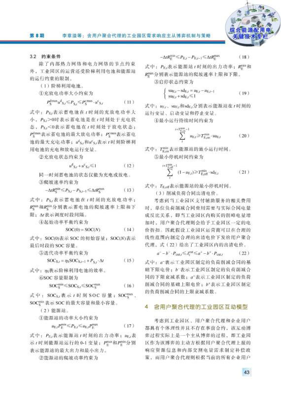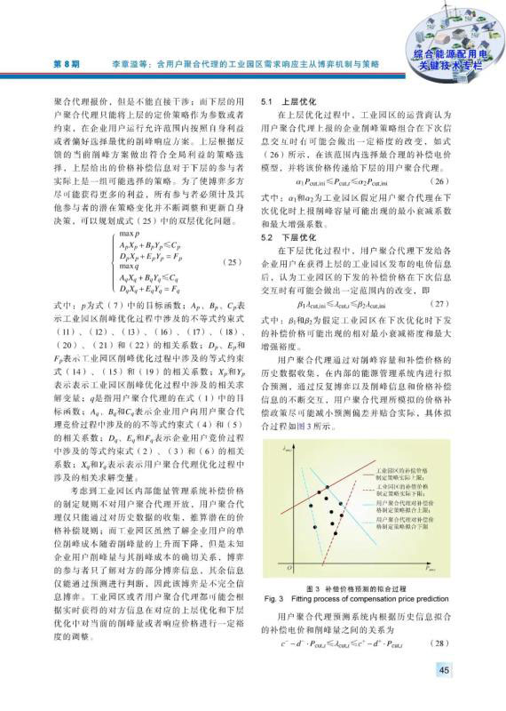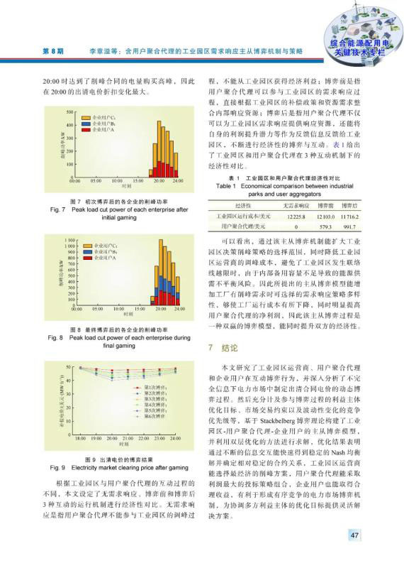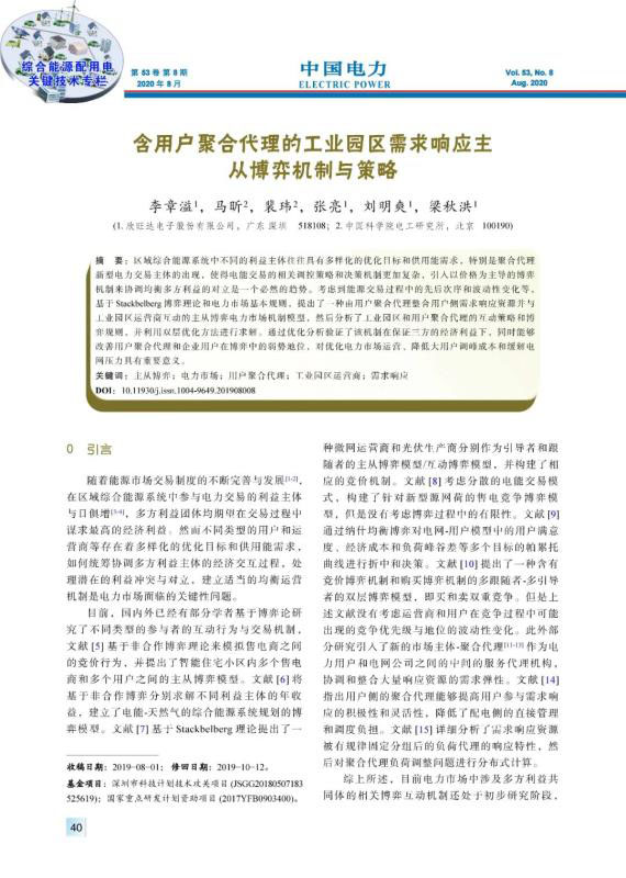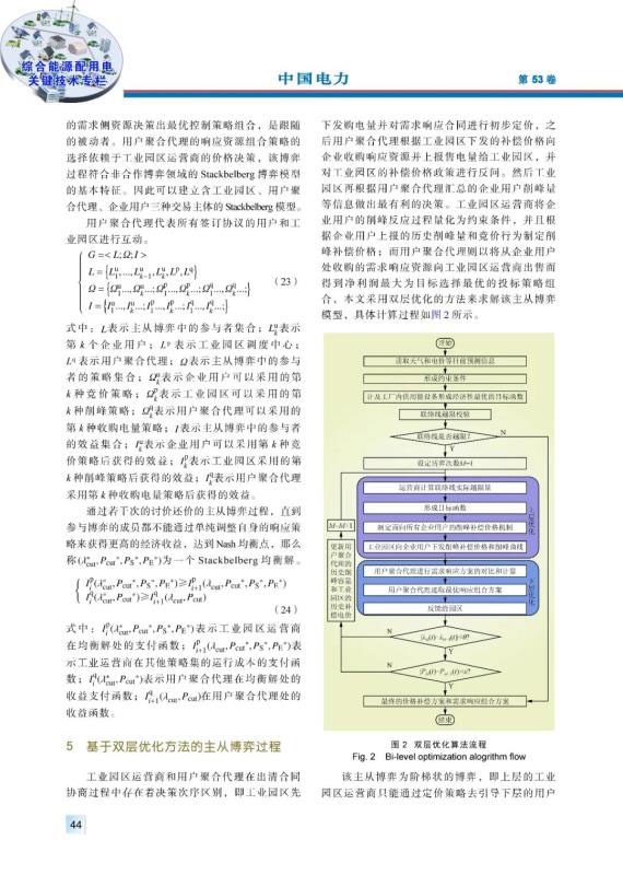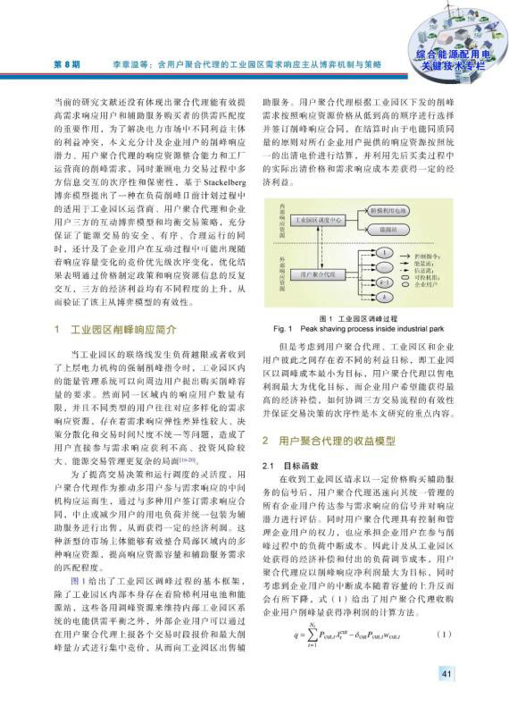 區(qū)域綜合能源系統(tǒng)中不同的利益主體往往具有多樣化的優(yōu)化目標(biāo)和供用能需求,特別是聚合代理新型電力交易主體的出現(xiàn),使得電能交易的相關(guān)調(diào)控策略和決策機(jī)制更加復(fù)雜,引入以?xún)r(jià)格為主導(dǎo)的博弈機(jī)制來(lái)協(xié)調(diào)均衡多方利益的對(duì)立是一個(gè)必然的趨勢(shì)??紤]到能源交易過(guò)程中的先后次序和波動(dòng)性變化等,基于Stackbelberg博弈理論和電力市場(chǎng)基本規(guī)則,提出了一種由用戶(hù)聚合代理整合用戶(hù)側(cè)需求響應(yīng)資源并與工業(yè)園區(qū)運(yùn)營(yíng)商互動(dòng)的主從博弈電力市場(chǎng)機(jī)制模型,然后分析了工業(yè)園區(qū)和用戶(hù)聚合代理的互動(dòng)策略和博弈規(guī)則,并利用雙層優(yōu)化方法進(jìn)行求解。通過(guò)優(yōu)化分析驗(yàn)證了該機(jī)制在保證三方的經(jīng)濟(jì)利益下,同時(shí)能夠改善用戶(hù)聚合代理和企業(yè)用戶(hù)在博弈中的弱勢(shì)地位,對(duì)優(yōu)化電力市場(chǎng)運(yùn)營(yíng)、降低大用戶(hù)調(diào)峰成本和緩解電網(wǎng)壓力具有重要意義。