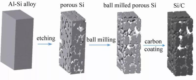 圖10 由Al-Si合金制備Si/C復(fù)合材料的工藝過程