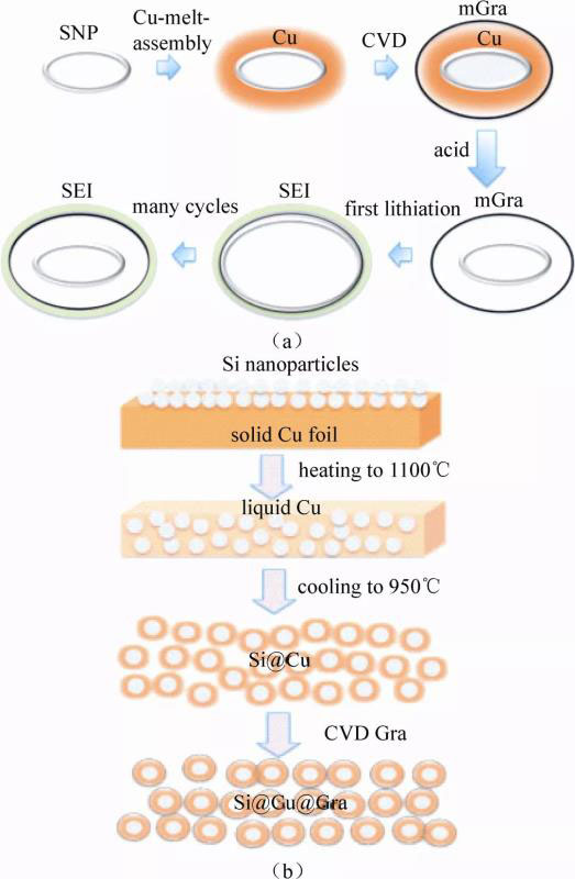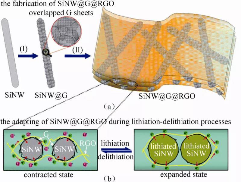 圖6 Si@G@RGO制備流程(a)和充放電過程中的結(jié)構(gòu)變化(b)