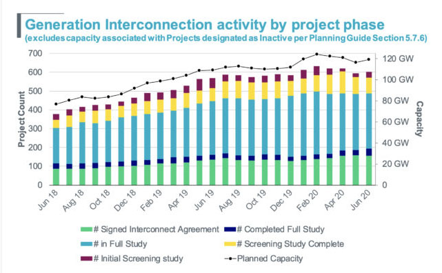 儲(chǔ)能開(kāi)發(fā)商在今年要求德州電力可靠性委員會(huì)(ERCOT)對(duì)總計(jì)裝機(jī)容量4.9GW的32個(gè)電池儲(chǔ)能項(xiàng)目進(jìn)行全面互連研究,而德州電力可靠性委員會(huì)(ERCOT)在今年只完成了9項(xiàng)研究,其裝機(jī)容量總計(jì)僅為0.7GW。在2019年,德州電力可靠性委員會(huì)(ERCOT)只批準(zhǔn)了總裝機(jī)容量為205MW的兩個(gè)電池儲(chǔ)能項(xiàng)目,與此同時(shí)卻收到了43項(xiàng)電池儲(chǔ)能系統(tǒng)審批申請(qǐng),其總裝機(jī)容量為4.1GW。