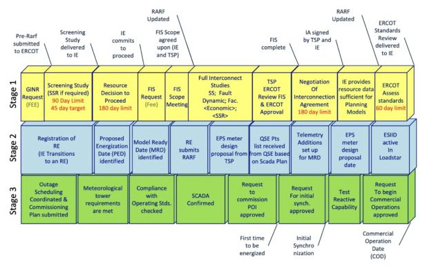 德州電力可靠性委員會(huì)(ERCOT)審批的過(guò)程如下所示,其全面互連研究的內(nèi)容在下圖第一行的中間: