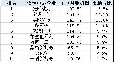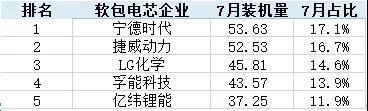2020年7月中國市場(chǎng)軟包電池裝機(jī)量TOP5