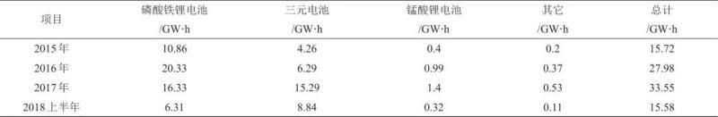 表2 我國動力電池裝機(jī)總量及按正極材料分類數(shù)量(2015—2018年上半年)
