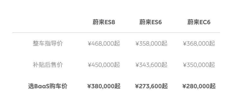選擇BaaS模式購買蔚來汽車的用戶,在購車時不需購買電池包,機(jī)動車銷售發(fā)票價格中不含電池包價格,用戶的金融貸款首付和每月還款額也以去掉電池包的價格計算。