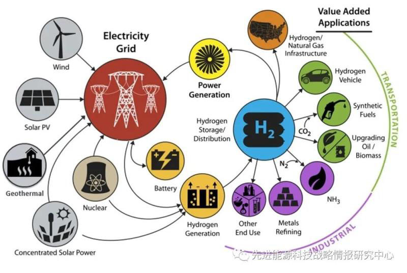 該領域開展研究包括:(1)將氫發(fā)電廠的電力用于煉鋼廠;(2)將固體氧化物電解池(SOEC)與直接還原煉鐵工廠集成,實現(xiàn)綠色煉鐵。