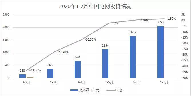 8月20日,國(guó)家能源局公布的數(shù)據(jù)顯示,1-7月份,全國(guó)電網(wǎng)工程完成投資2053億元,同比增長(zhǎng)1.6%。
