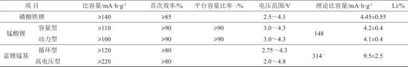 2.10 正極材料的比容量、首次效率、電壓平臺(tái)要求