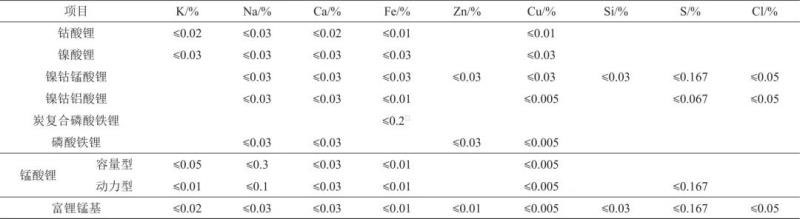 表10 正極材料標(biāo)準(zhǔn)中雜質(zhì)元素含量要求