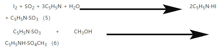 正是因?yàn)樗趾勘容^重要,需要用高靈敏度的卡爾費(fèi)休方法測(cè)試:采用I2、SO2、吡啶、無(wú)水CH3OH配制成試劑,與樣品中水反應(yīng),計(jì)算出樣品中水含量,其測(cè)試原理見(jiàn)式(5)和式(6)