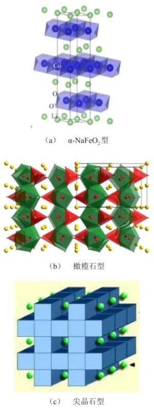 圖4 幾種常見(jiàn)正極材料的晶體結(jié)構(gòu)示意圖