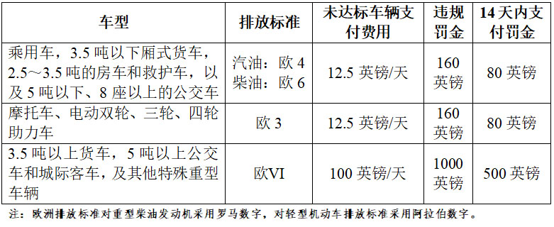 表 4 倫敦超低排放區(qū)排放及收費(fèi)標(biāo)準(zhǔn)[ 邱詩永,史歌,劉岱宗:城市低排放區(qū)國際案例研究,載《中國新能源汽車產(chǎn)業(yè)發(fā)展報(bào)告(2019)》,北京:社會科學(xué)文獻(xiàn)出版社,第431頁。]