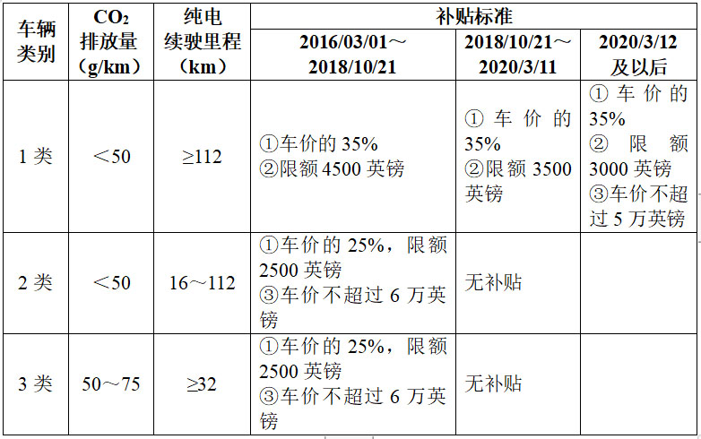 表2 英國電動汽車補(bǔ)貼內(nèi)容