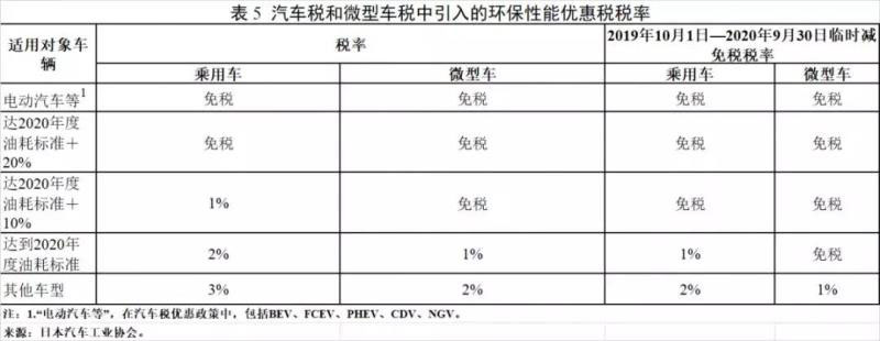 在汽車購置環(huán)節(jié)計稅依據(jù)中引入汽車環(huán)保性能要求。2019年10月1日起,消費(fèi)稅稅率由8%上調(diào)至10%,同時廢止汽車購置稅(稅率2%—3%),在汽車稅和微型車稅中引入需在購置環(huán)節(jié)一次性繳納的環(huán)保性能優(yōu)惠稅,即在購買汽車時根據(jù)其環(huán)保性能(油耗)繳納汽車稅(稅率0%—3%)或微型車稅(0%—2%)。同時,為減輕消費(fèi)稅上調(diào)的壓力,環(huán)保性能優(yōu)惠稅在2019年10月1日—2020年9月30日期間實(shí)施臨時減免措施,稅率統(tǒng)一下調(diào)了一個百分點(diǎn)。