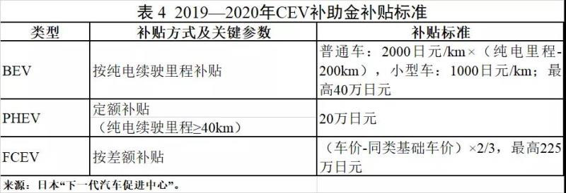 對不同類型電動乘用車采取不同的補(bǔ)貼計算方式及標(biāo)準(zhǔn)。日本從1998年起對購置清潔能源乘用車(包括混合動力汽車)進(jìn)行補(bǔ)貼(CEV補(bǔ)助金)。政府設(shè)立下一代汽車促進(jìn)中心(NeV),搭建車輛補(bǔ)貼信息平臺。2015年起,補(bǔ)貼對象范圍縮減為BEV、PHEV、FCEV和CDV。日本政府每年對補(bǔ)貼政策進(jìn)行評估,決議下一年是否調(diào)整政策。2019—2020年,BEV單車補(bǔ)貼額依據(jù)純電續(xù)駛里程計算,最高40萬日元(約合2.6萬元人民幣);PHEV純電續(xù)駛里程不得低于40km,單車定額補(bǔ)貼20萬日元(約合1.3萬元人民幣);FCEV按照與相同或同等類型汽油車的差額進(jìn)行補(bǔ)貼,補(bǔ)貼上限為225萬日元(約合14.9萬元人民幣)。此外,部分地區(qū)還提供地方購置補(bǔ)貼。