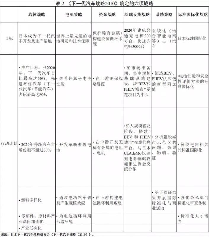 2010年4月,由日本經(jīng)濟(jì)產(chǎn)業(yè)?。ê喎Q“經(jīng)產(chǎn)省”)牽頭的“下一代汽車戰(zhàn)略研究會”發(fā)布《下一代汽車戰(zhàn)略(2010)》,該文件是日本首份專門針對發(fā)展下一代汽車的戰(zhàn)略規(guī)劃類文件,也是后續(xù)產(chǎn)業(yè)發(fā)展的綱領(lǐng)性文件,圍繞實(shí)現(xiàn)下一代汽車市場目標(biāo),從電池、資源、基礎(chǔ)設(shè)施和標(biāo)準(zhǔn)國際化制定等方面制定了發(fā)展戰(zhàn)略、目標(biāo)及行動計劃。