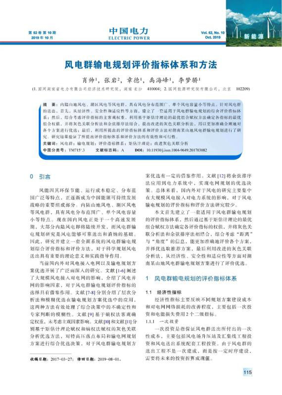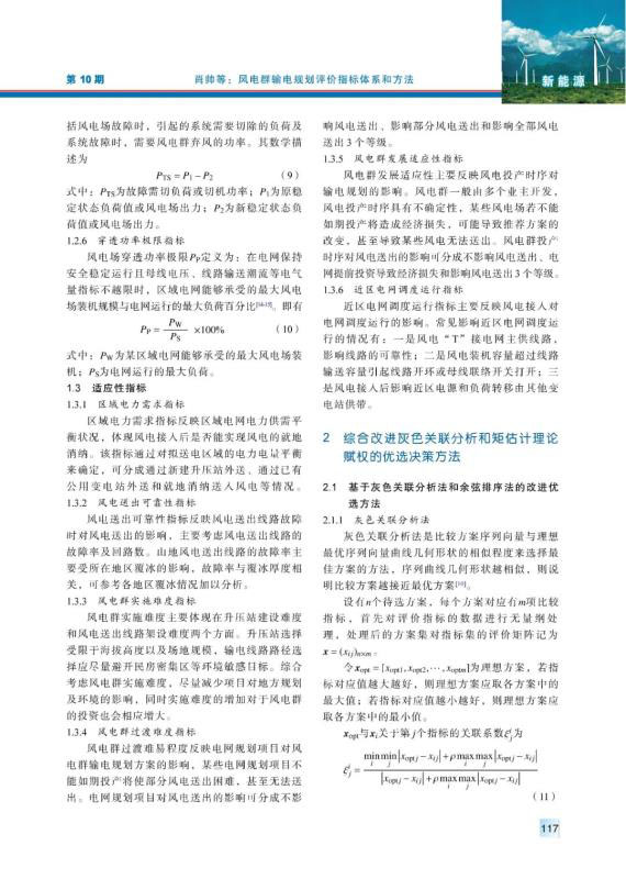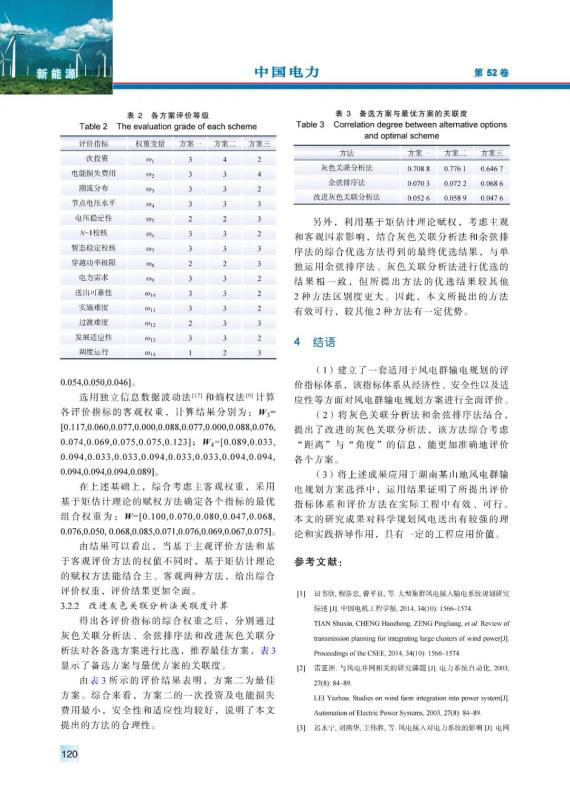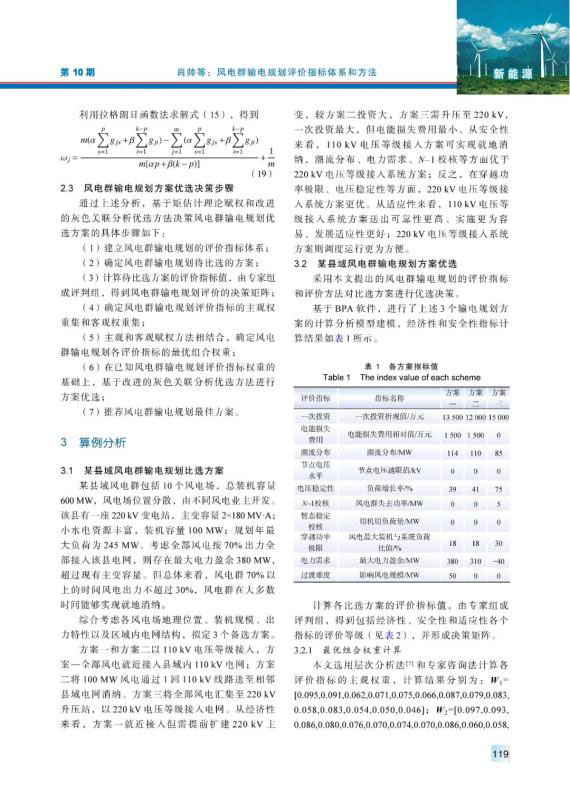 內(nèi)陸山地風(fēng)電、湖區(qū)風(fēng)電等風(fēng)電群,具有風(fēng)電分布范圍廣、單個(gè)風(fēng)電容量小等特點(diǎn)。針對(duì)風(fēng)電群的送出,首先,從經(jīng)濟(jì)性、安全性和適應(yīng)性等方面,建立了一套適用于風(fēng)電群輸電規(guī)劃的綜合評(píng)價(jià)指標(biāo)體系;然后,綜合考慮評(píng)價(jià)指標(biāo)的主客觀權(quán)重,利用基于矩估計(jì)理論的最優(yōu)組合賦權(quán)方法確定各指標(biāo)的最優(yōu)組合權(quán)值,并將灰色關(guān)聯(lián)分析法和余弦排序法結(jié)合,提出改進(jìn)的灰色關(guān)聯(lián)分析法,用以更加準(zhǔn)確合理地對(duì)各個(gè)方案進(jìn)行優(yōu)選;最后,利用所提出的評(píng)價(jià)指標(biāo)體系和評(píng)價(jià)方法對(duì)湖南某山地風(fēng)電群輸電規(guī)劃進(jìn)行了研究。研究結(jié)果驗(yàn)證了所提出評(píng)價(jià)指標(biāo)體系和評(píng)價(jià)方法的有效性和可行性。