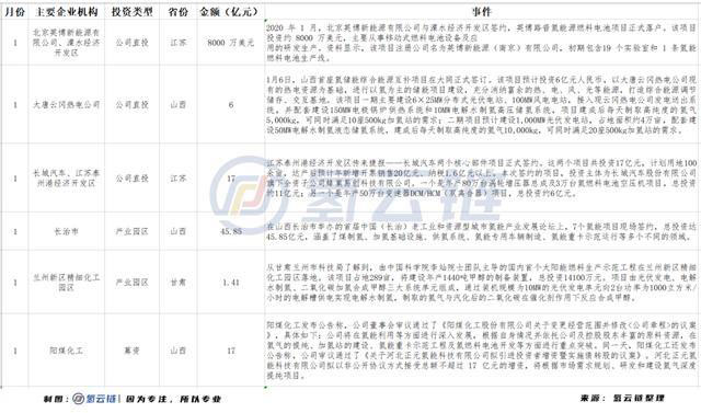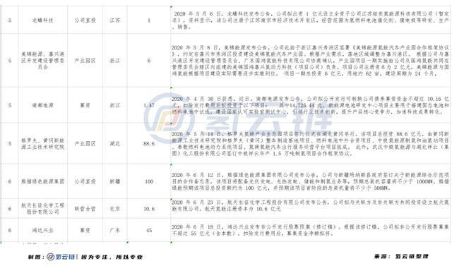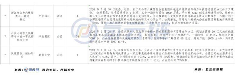 氫云鏈按照時(shí)間順序,對(duì)2020年1-7月氫能相關(guān)行業(yè)投資整理如下: