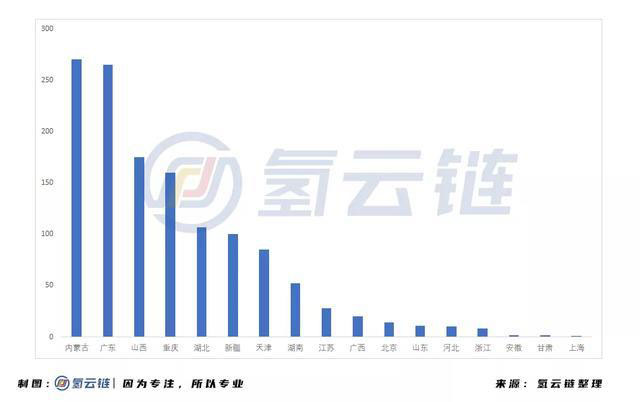 圖4 2020年上半年各省份氫能投資項(xiàng)目總金額情況(單位:億元) 來源:氫云鏈整理