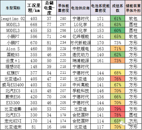 特斯拉的成組率最低,僅有60%,這樣也使較高的單體電池性能被成組指標壓制,形成系統(tǒng)能量密度在160的偏低的局面。