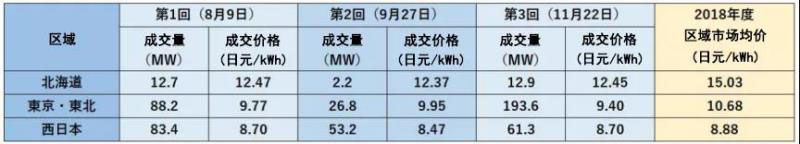 如表2所示,2020年日本交割的基荷電力分別于2019年8月、9月和11月進行了競價交易,分為北海道、東京?東北和西日本三個區(qū)域市場進行。北海道地區(qū)價格達到12.37~12.47日元/kWh、東京?東北地區(qū)為9.40~9.95日元/kWh、西日本地區(qū)為8.47~8.70日元/kWh。而2018年度三區(qū)域現(xiàn)貨平均價格分別為北海道15.03日元/kWh、東京?東北10.68日元/kWh、西日本8.88日元/kWh。從交易價格來看,基荷電力市場價格盡管低于現(xiàn)貨市場價格1-2日元/kWh,但實際上與新增電力公司同大電力公司簽訂的中長期雙邊協(xié)議價格相差無幾,基荷市場并未突顯現(xiàn)出價格優(yōu)勢。從交易量來看,北海道市場為27.8MW、東京?東北市場308.6MW、西日本市場為197.9MW,三個市場成交電量為534.3MW,相當于46.8億kWh/年,僅占新增電力公司2018年度全部售電量(1229億kWh)的3.8%。因此,新增電力公司更傾向通過中長期協(xié)議獲得大電力公司的備用電源,或者通過資本紐帶依附于大電力公司抵御風險。
