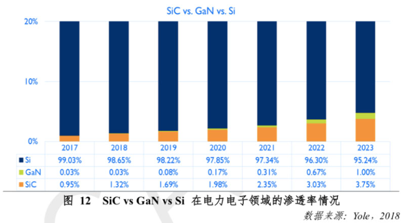 據(jù)Yole統(tǒng)計,SiC電力電子器件的滲透率還不到2%。