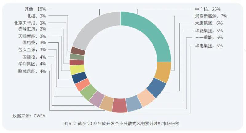 圖6- 2 截至2019 年底開發(fā)企業(yè)分散式風(fēng)電累計裝機市場份額