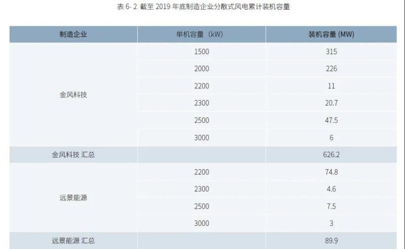 表6- 2 截至2019 年底制造企業(yè)分散式風(fēng)電累計裝機容量