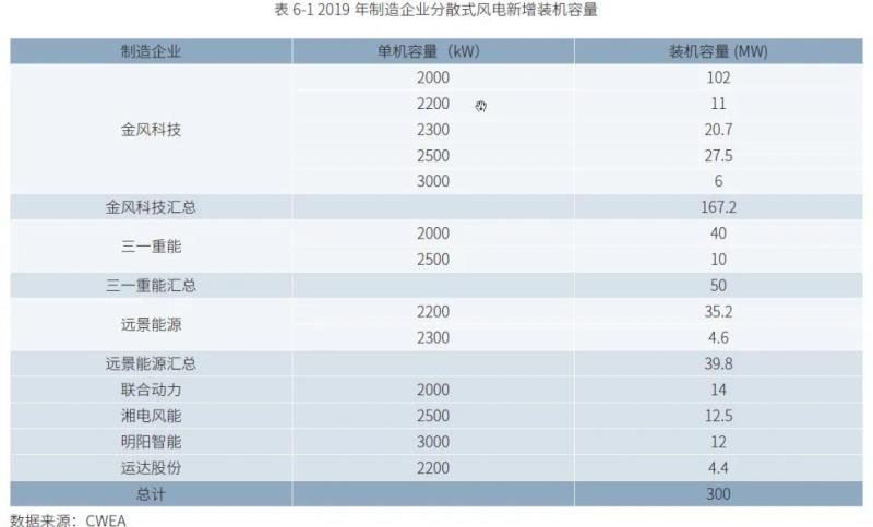 表6-1 2019 年制造企業(yè)分散式風(fēng)電新增裝機容量