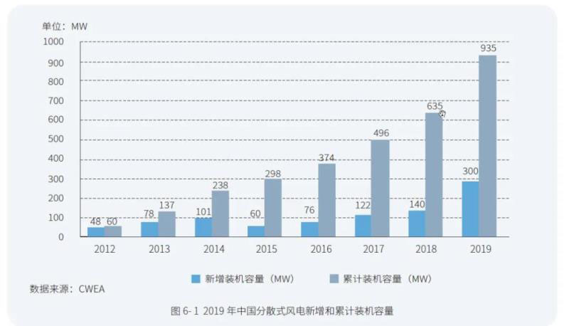 圖6- 1 2019 年中國分散式風(fēng)電新增和累計裝機容量