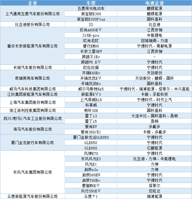 第二批汽車企業(yè)、車型及配套電池企業(yè)